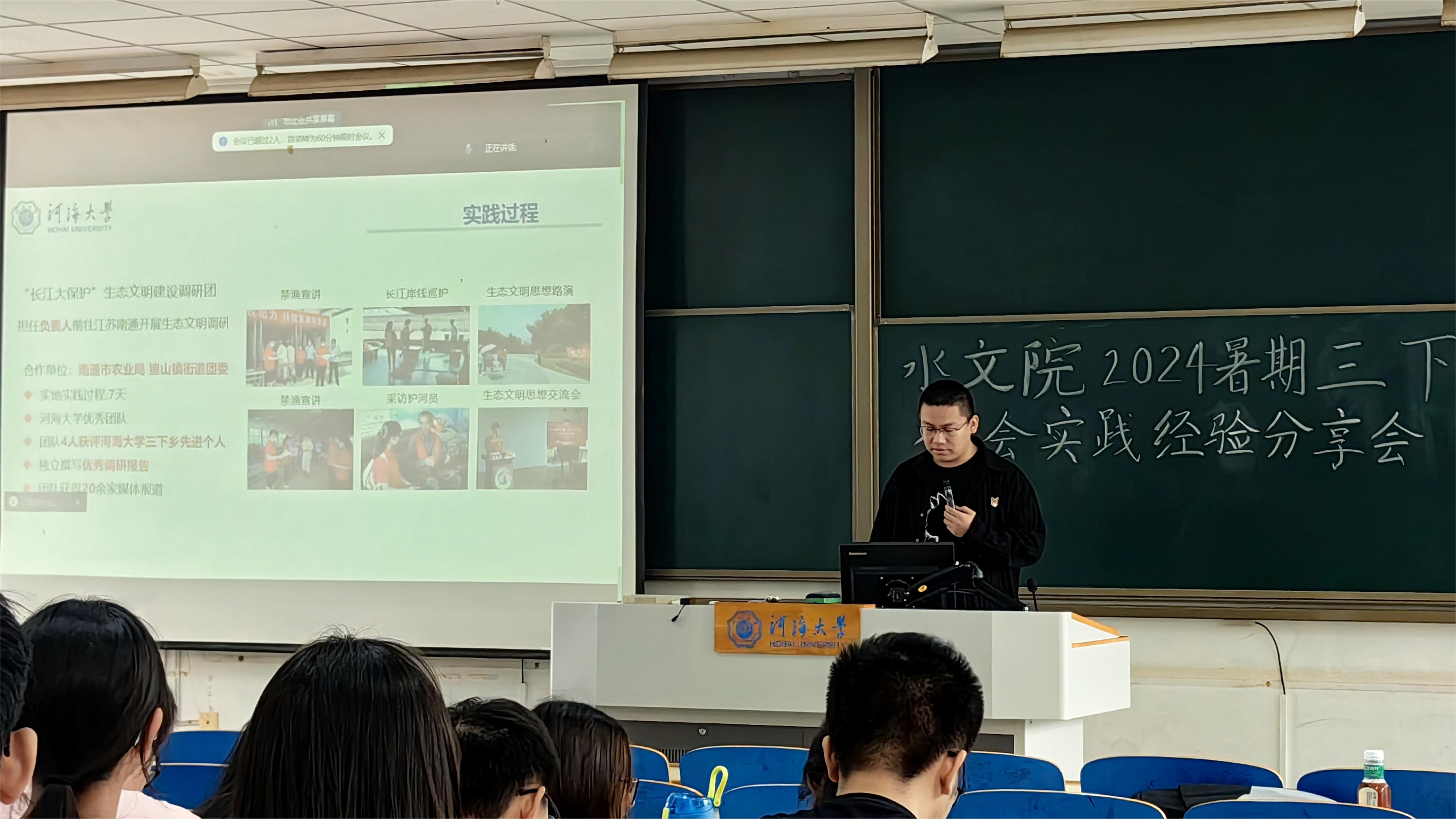 暑期社会实践系列优秀经验分享会的成功举办,不仅让参与者们分享了实践过程中的收获和感悟,也激发了更多学生对实践活动的兴趣和热情,衷心希望水文青年积极投身社会实践活动,把爱国情、强国志、报国行自觉融入新时代追梦征程,为实现中华民族伟大复兴的中国梦贡献青春力量。