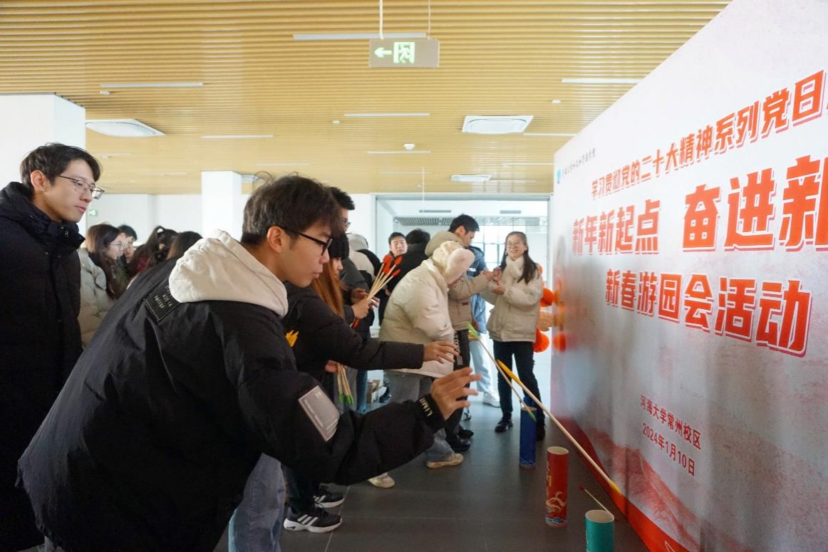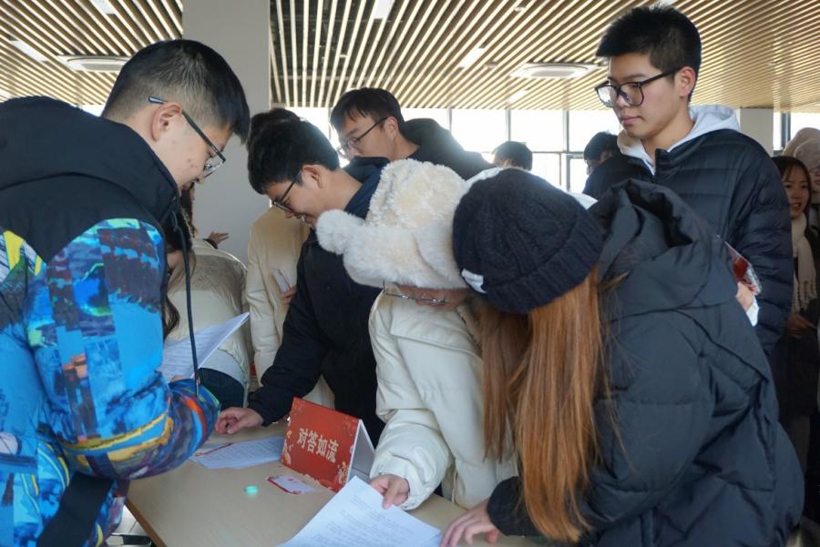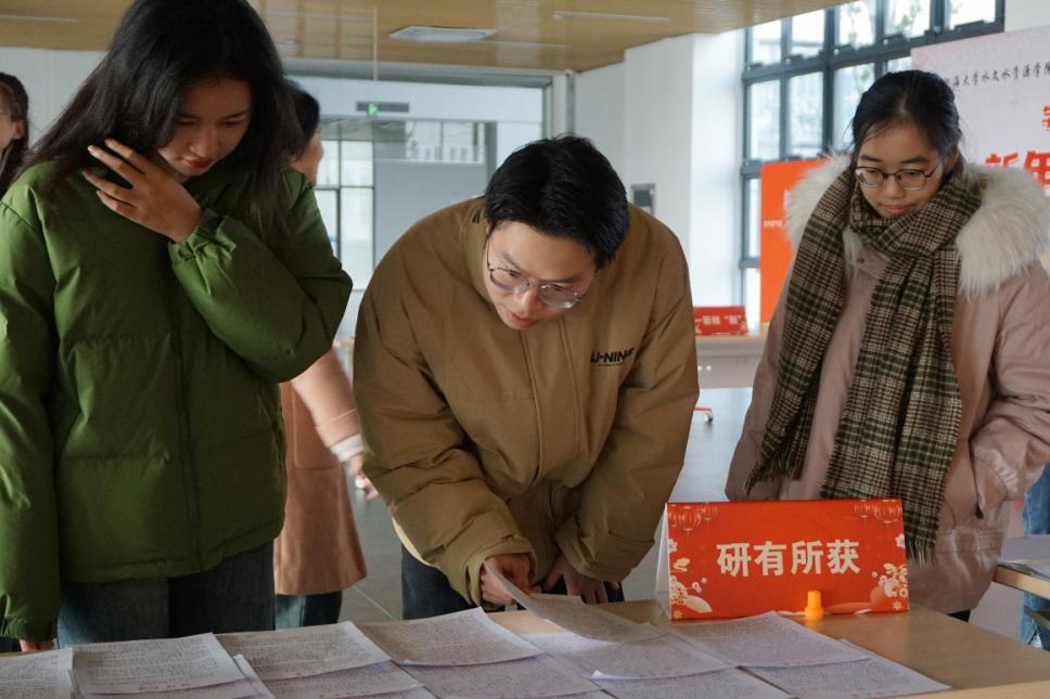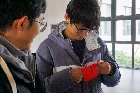 本次党日活动以新春游园会的形式进行,分为“对答如流”、“研有所获”、“新年寄语”“一箭倾‘新’”、“翰墨迎春”“妙剪生花”六个环节,学生党员通过闯关获得相应印章,集齐印章即可兑换奖品。