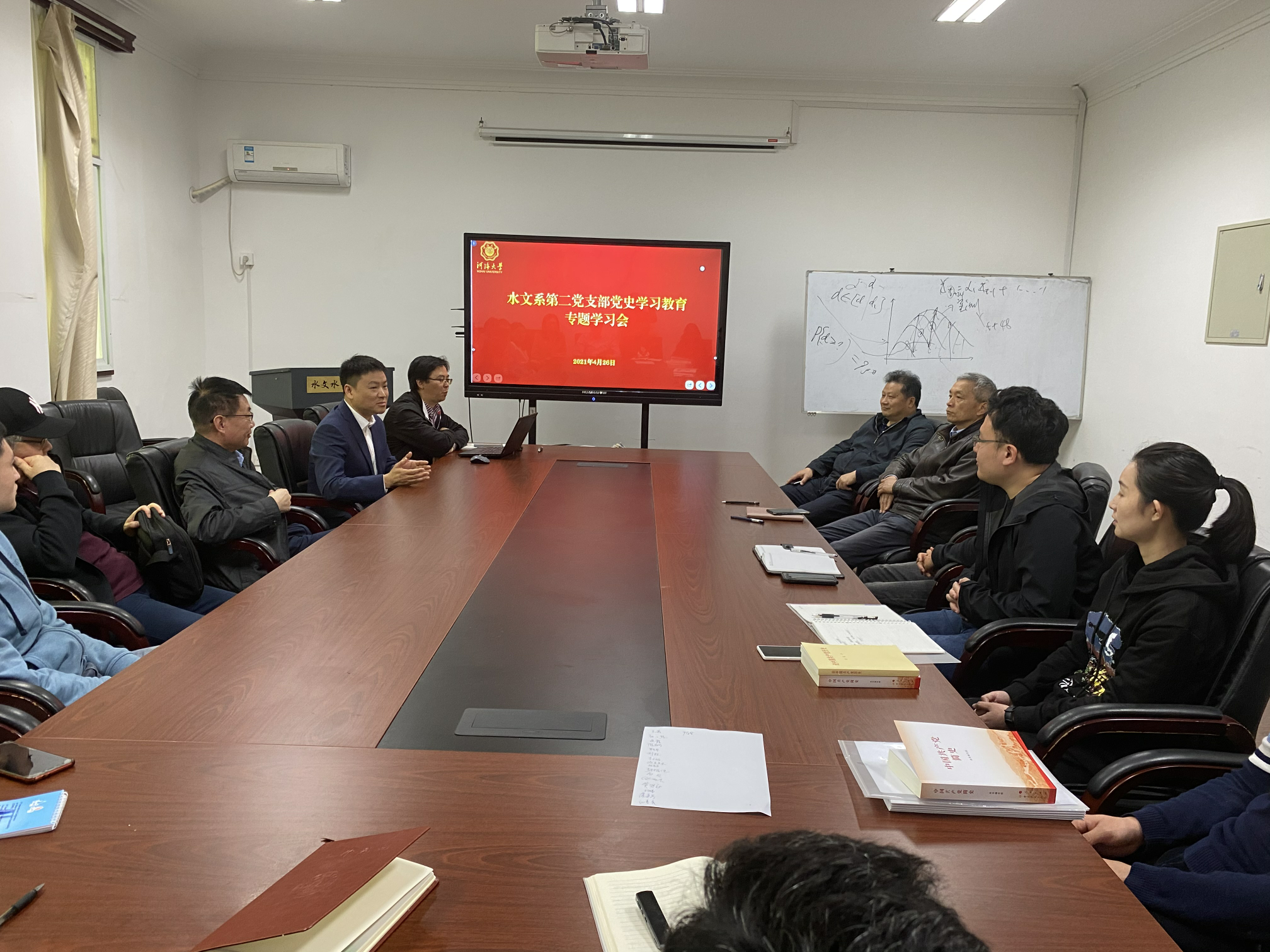 支部书记张珂同志总结本次专题学习会,他表示,水文系二支部开展好党史学习教育要实践好“12345行动计划”,即围绕“一个主题”——学百年党史、育时代新人;发挥“两个作用”——党支部政治引领作用、党员先锋带头作用;贯穿“三条红线”——围绕“学”字,讲好百年党史;围绕“教”字,坚持百年树人;围绕“实”字,落实百年大计,坚持“四位一体”——构建“学+研+悟+行”党员教育体系;开展“五项活动”——专题交流、红色研学、党员走访、争先创优、服务师生。在党史学习教育中,党员要把带头讲政治、带头学理论、带头践初心、带头担使命付诸行动,将学习成果转化为教书育人实效。