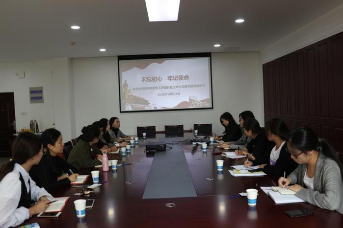 2019年10月23日上午,在小说狂人 党委副书记鲁扬带领下,学院辅导员许文傧、崔玮嵛、韦语涵、林彦赴土木与交通学院开展交流学习活动,两院队伍在科学馆407就基层党建工作及民族生管理工作进行了深入的交流学习。