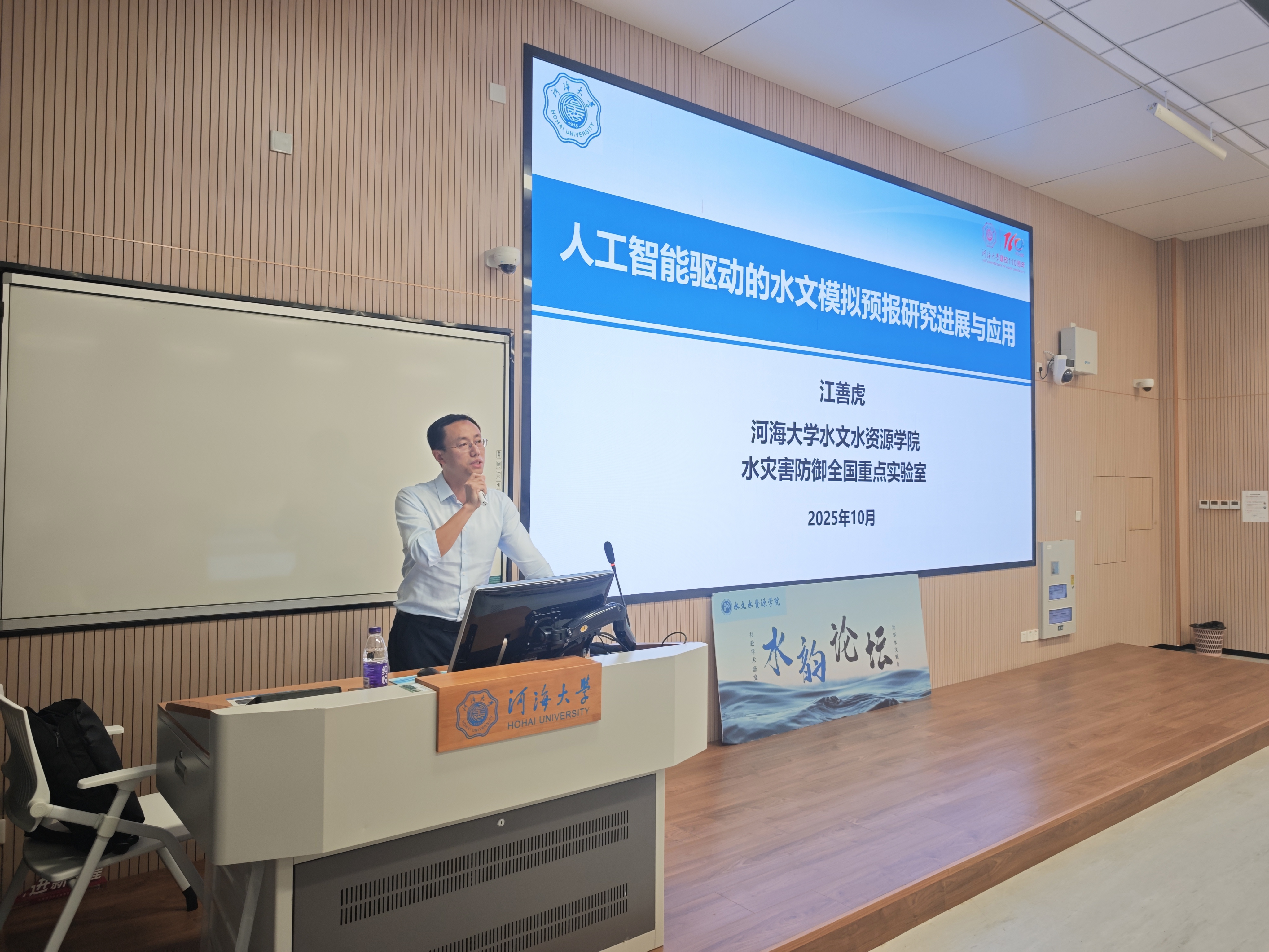 为帮助学生拓展学术视野,了解专业发展前景,明确自身发展方向,10月14日,由小说狂人 主办、湖源保护母亲河协会协办的第八十一期“"水韵论坛”在常州校区顺利举行。本次活动作为“大学生科技社团支持计划”系列活动之一,特邀学院水文与水资源工程系主任江善虎教授为2024级本科生作“人工智能驱动的水资源调度研究讲展与应用”专题学术报告。