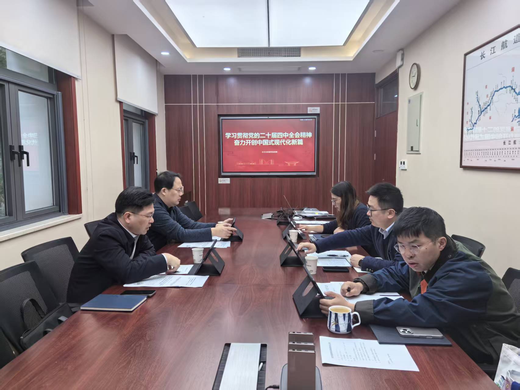 会议强调,全院上下要把学习好、贯彻好全会精神作为当前和今后一个时期的重大政治任务,迅速掀起学习热潮。要通过多种形式组织师生深入学习,切实将思想和行动统一到党中央的决策部署上来。要紧密结合水利行业特色与国家战略需求,将全会精神落实到学院工作的各方面和全过程。会议要求,要聚焦水利强国使命,主动将学院发展融入国家现代化建设大局,特别是在保障国家水安全、服务国家战略方面展现担当作为。要以贯彻落实全会精神为契机,科学谋划学院“十五五”发展规划,面向国际前沿和国民经济主战场,以高质量党建为引领,筑牢学科建设根基,构建新工科人才培养体系,打造国际化高水平师资队伍,强化有组织科研学术攻关,加速科研成果高效转化,提升社会服务与合作交流能力,在水文水资源关键核心技术创新上聚力攻坚,为水利高质量发展和发展水利新质生产力贡献智慧。