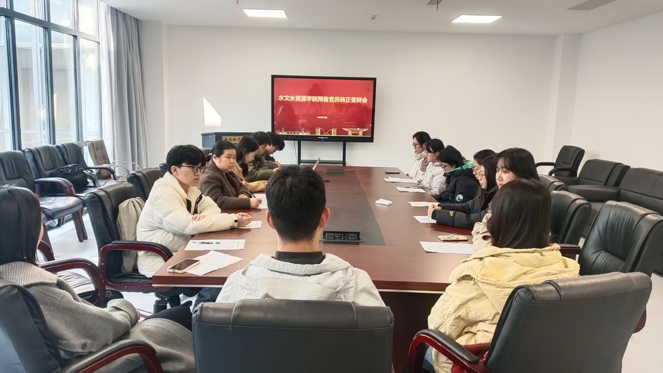 会议分为个人陈述、现场问答和综合评议三个环节。预备党员围绕预备期间的思想动态、学业表现、履职情况、日常行为等方面进行汇报,并深入剖析自身不足,明确未来努力方向。在认真听取汇报后,答辩评委结合每位预备党员的实际情况,就理想信念、党的理论知识、预备期表现及对时事热点的理解等方面进行了针对性提问与考察,并开展综合评议。