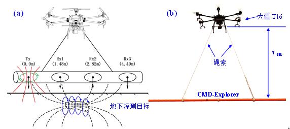 2 无人机载地质雷达设计草图(a)及原型机(b