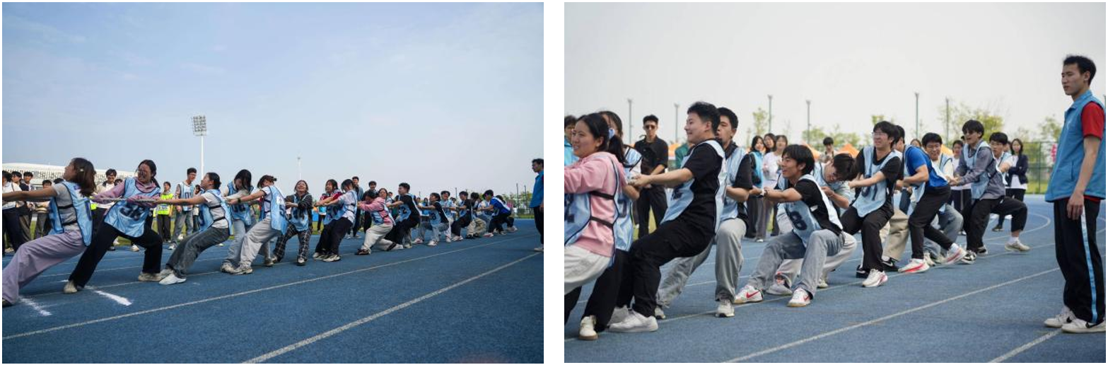 本次运动会以团体趣味项目为主,兼顾趣味性、协作性与参与度,设置毛毛虫竞速、“腰缠万贯”、“最长的腿”、“南水北调”、集体拔河等项目。