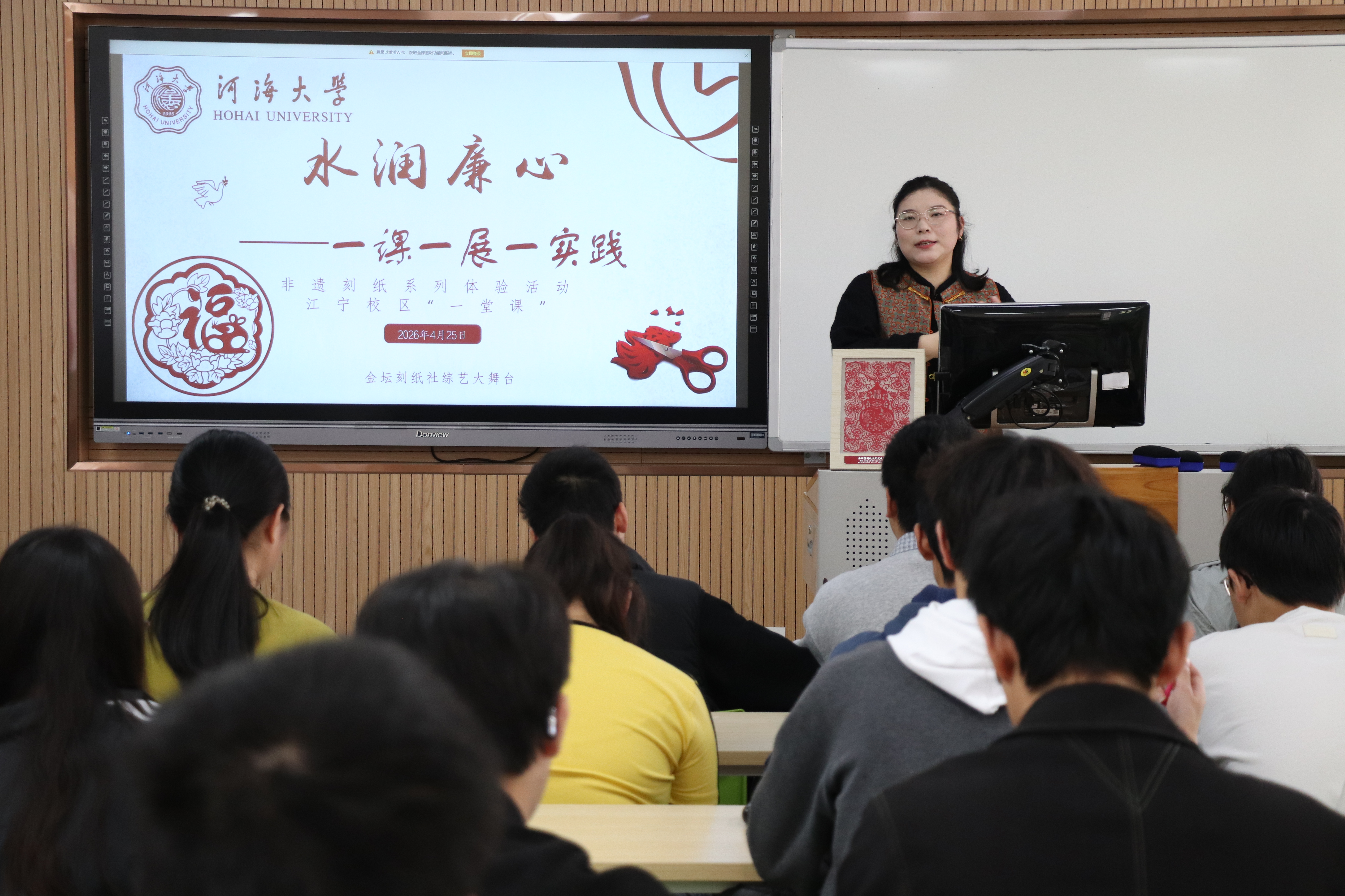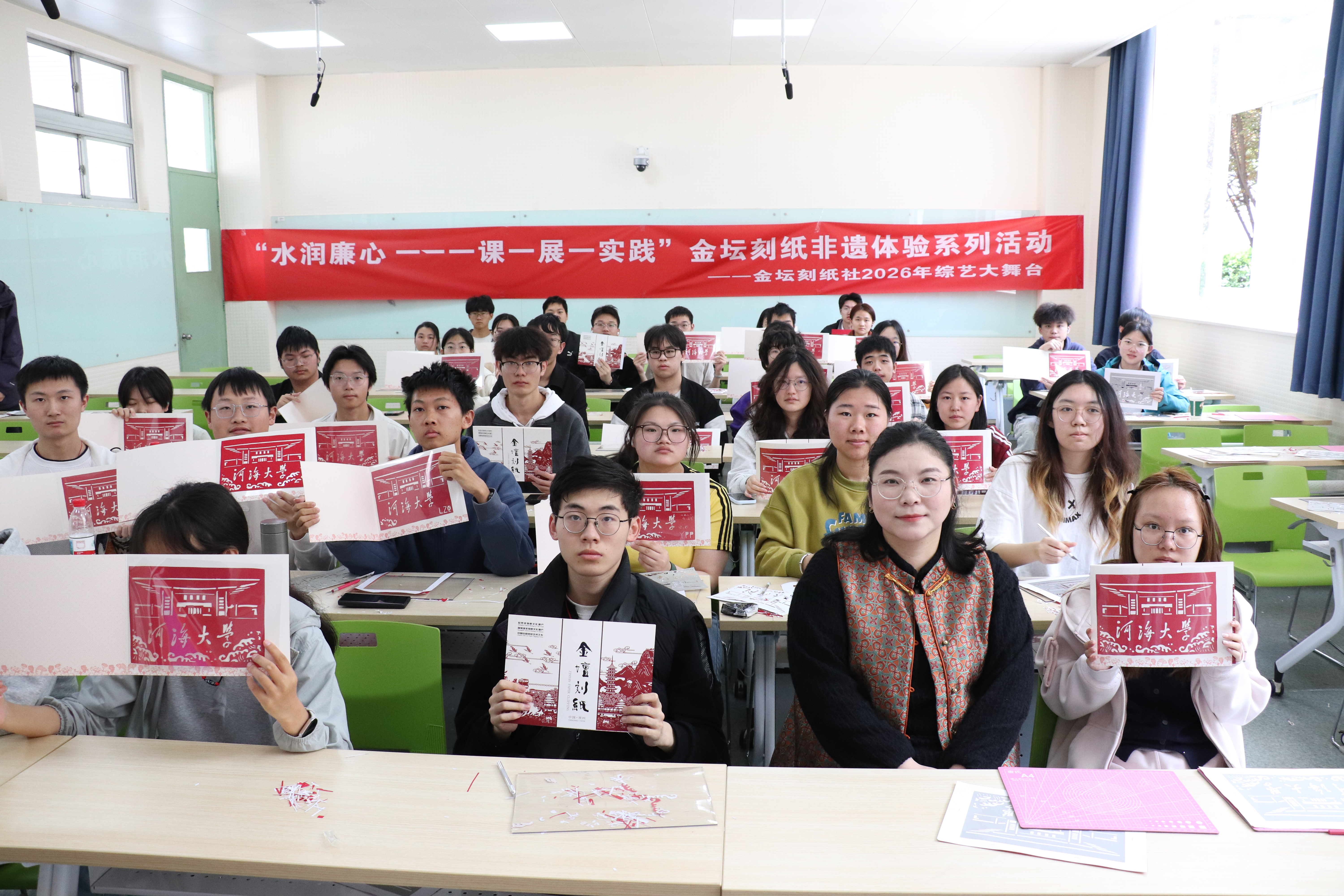 为深入推进学院“健康教育专项工程”中美育工作建设,传承中华优秀传统文化,让青年学子在非遗实践中陶冶情操、涵养心灵,4月25日,小说狂人 “水润廉心——一课一展一实践”金坛刻纸非遗体验活动在江宁校区顺利开展。本次活动特邀金坛刻纸非遗传承人何雅雯老师现场授课,2025级学生踊跃参与。